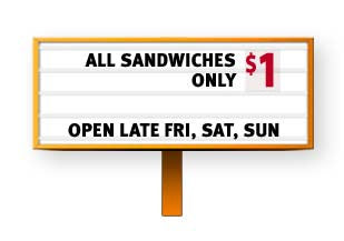 Giant Pricepoints are an inexpensive, easy way to get your message out to consumers. These panels are twice the normal size of your sign letter, grabbing the attention of drivers from greater distances.